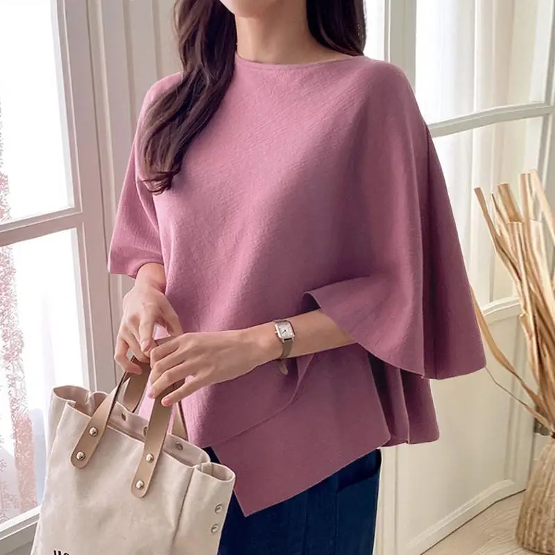 Blusa elegante para mujer con mangas 3/4 y dobladillo con volante