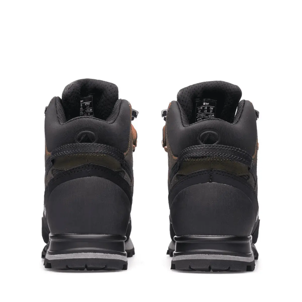 Entresuela: EVA y TPU Suela: Vibram de goma Plantilla: Ortholite de espuma Forro: Membrana B·Dry y lycra Capellada: Cuero Cow Suede y nailon