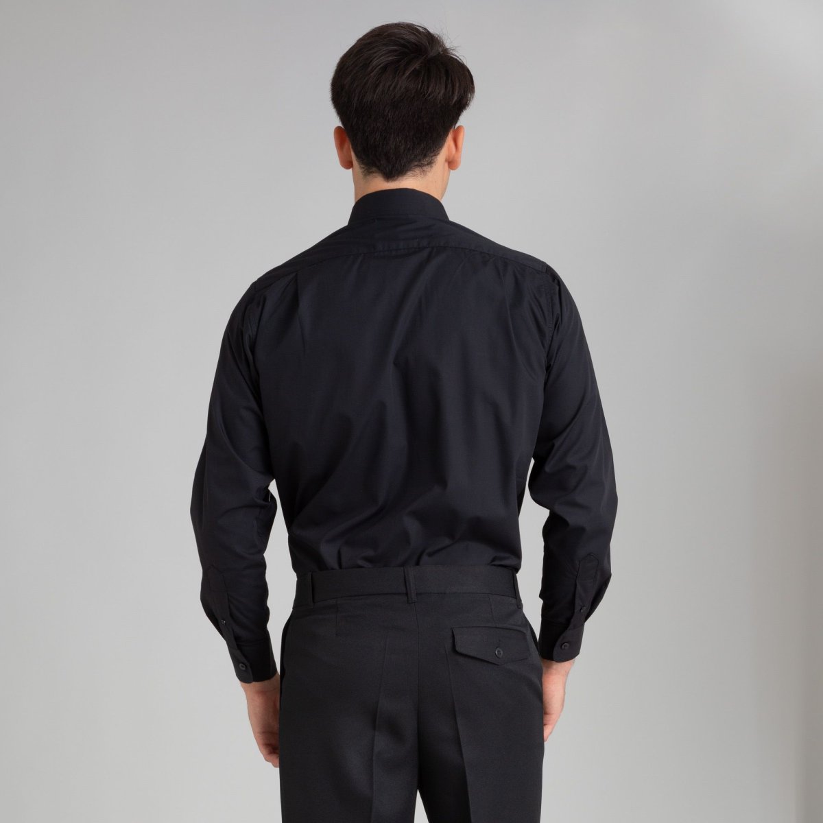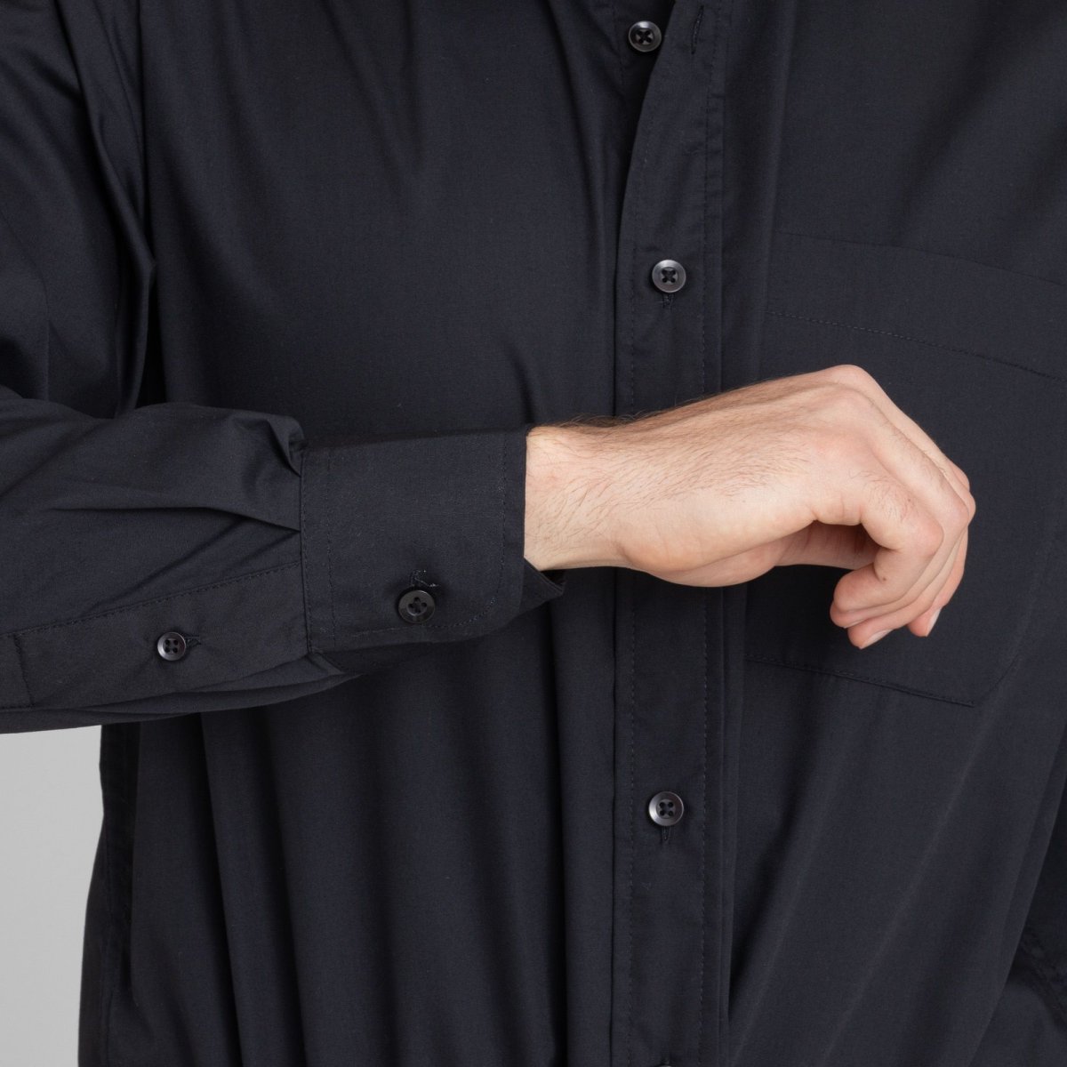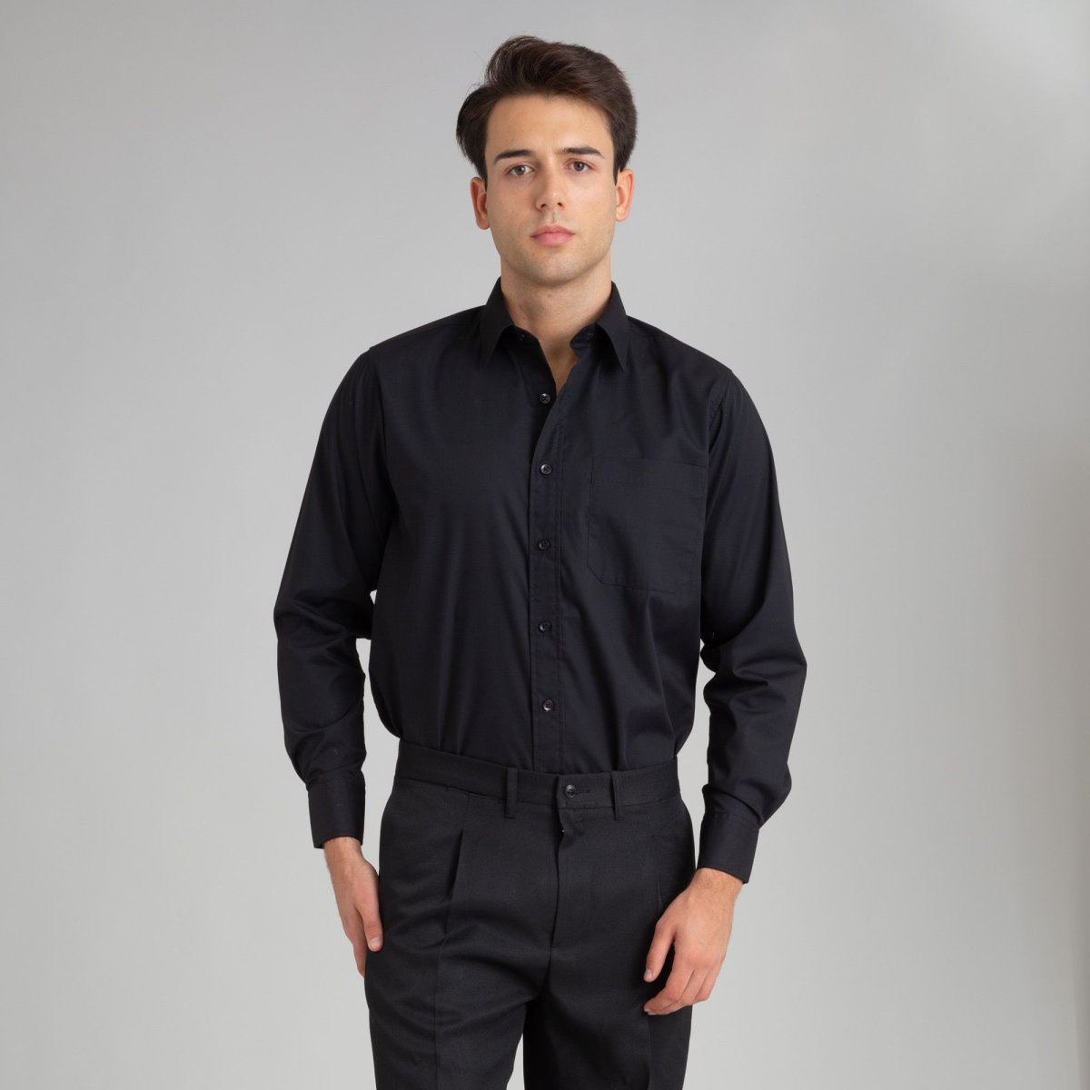 Camisa negra de manga larga para hombre, disponible en tallas S, M, L, XL, XXL y XXXL. OFERTA 2×1: Combina el producto seleccionado con otro de la misma categoría para beneficiarte de la OFERTA 2×1