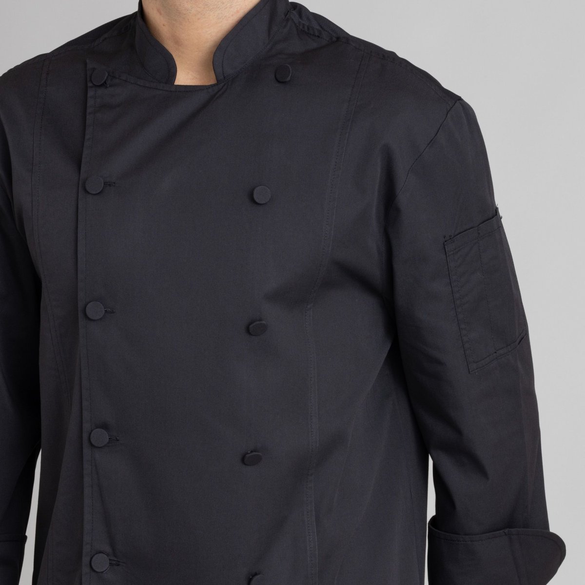 Chaqueta de cocina de manga larga para hombre en color negro marca Monza (modelo 4118), disponible en tallas S, M, L, XL, XXL y XXXL. OFERTA 2×1: Combina el producto seleccionado con otro de la misma categoría para beneficiarte de la OFERTA 2×1