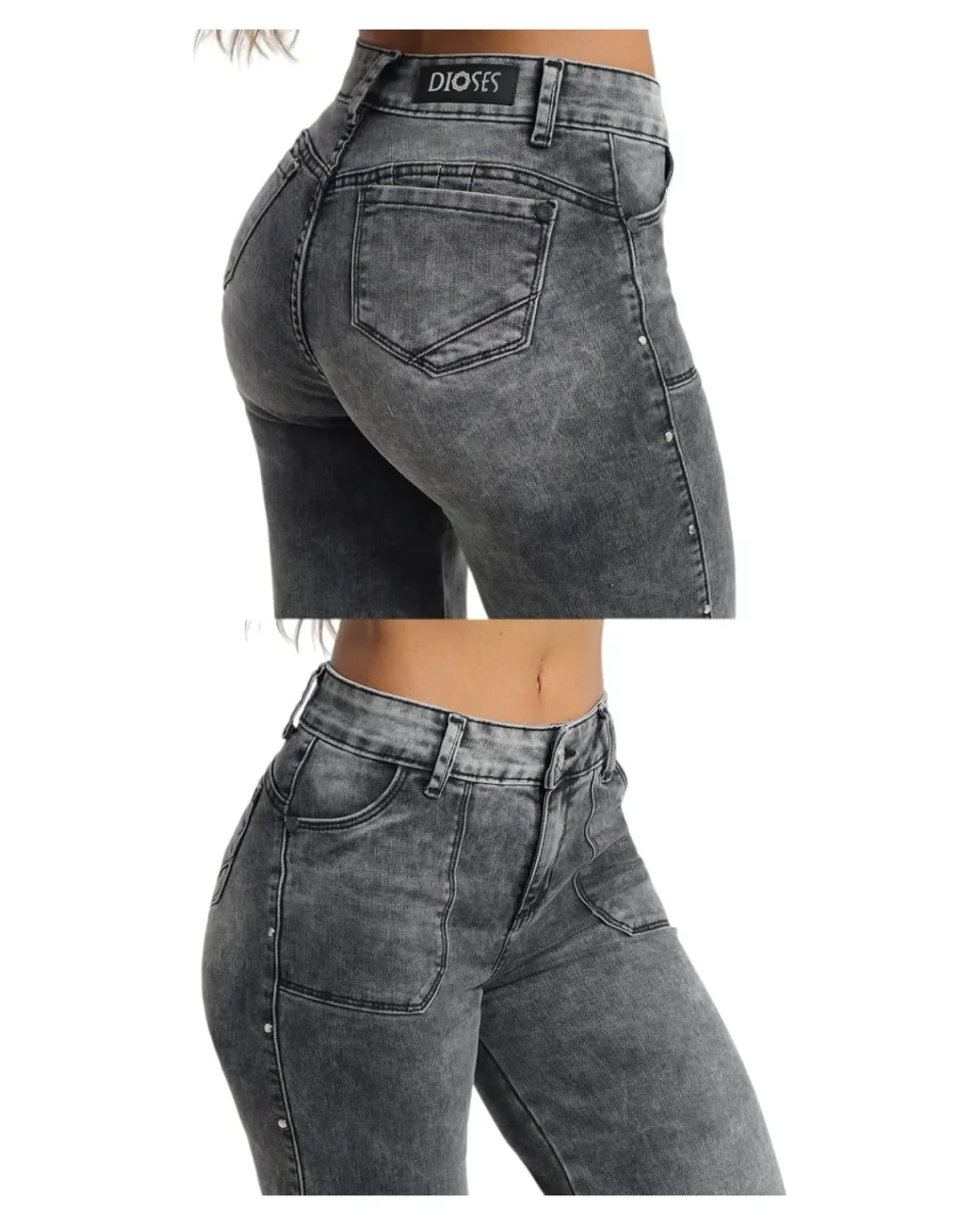 Estilo urbano y actitud en cada paso. Los jeans Giulia New Trento de Divine presentan un corte wide leg moderno y cómodo, con un acabado en tono gris desgastado que combina con todo. Las tachas decorativas añaden un toque audaz y femenino, ideal para looks casuales con personalidad.
