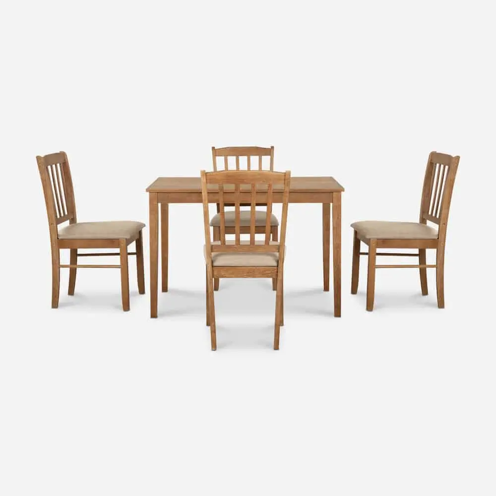 El juego de comedor Kansas de la marca CIC está compuesto por una mesa enchapada en roble, lo que le da una apariencia natural y cálida. Incluye 4 sillas fabricadas en rubberwood, un material resistente y duradero. Las sillas cuentan con un tapizado claro que aporta luminosidad y elegancia, complementando el diseño sencillo y funcional del conjunto. Este juego es perfecto para espacios pequeños, ofreciendo estilo y comodidad en un tamaño compacto, está compuesto por una mesa enchapada en roble, lo que le da una apariencia natural y cálida. Incluye 4 sillas fabricadas en rubberwood, un material resistente y duradero. Las sillas cuentan con un tapizado claro que aporta luminosidad y elegancia, complementando el diseño sencillo y funcional del conjunto. Este juego es perfecto para espacios pequeños, ofreciendo estilo y comodidad.