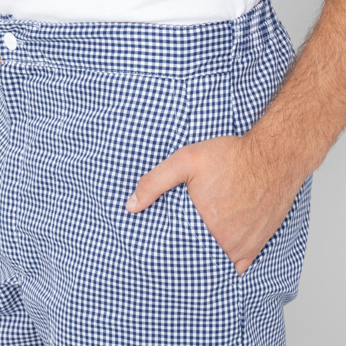 Pantalón de cocina para hombre a cuadros en color azul marca Confecciones Este con bolsillos laterales disponible en tallas: 38, 42, 46, 50, 54, 58 y 62. OFERTA 2×1: Combina el producto seleccionado con otro de la misma categoría para beneficiarte de la OFERTA 2×1